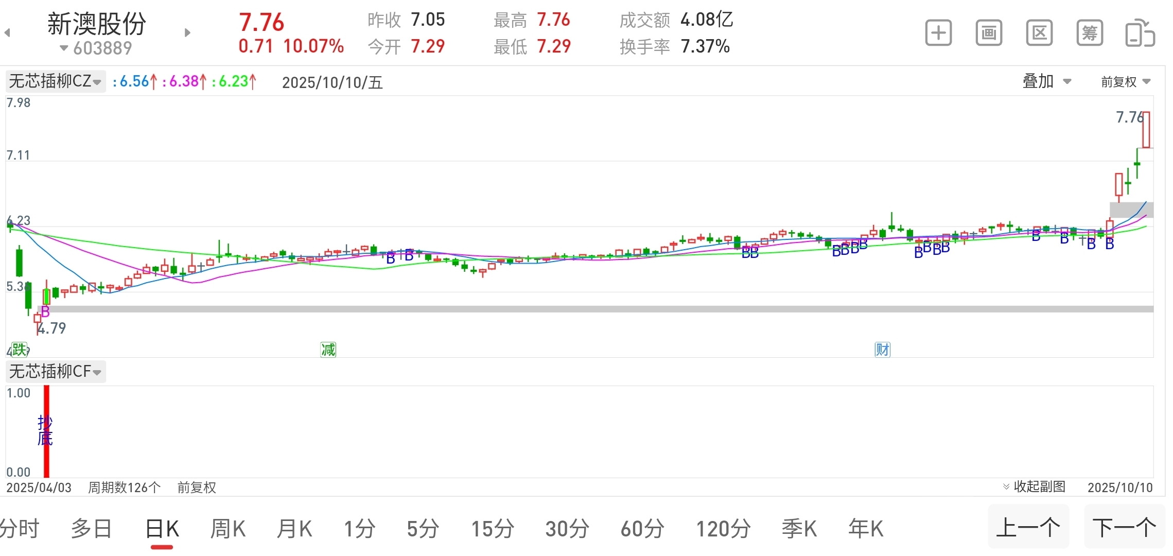 $新澳股份(SH603889)$ 这个市场最迷惑人的一句话就是顺势而为,因为趋势没有走出来的时候,你也不知道他是否能够走出趋势,当你能看到趋势的时候,很有可能要开始震荡或者是转头了。交易真正的精髓不是顺势,而是最早的发现那个拐点,当你能发现这个点的时候,才能说明交易开始。