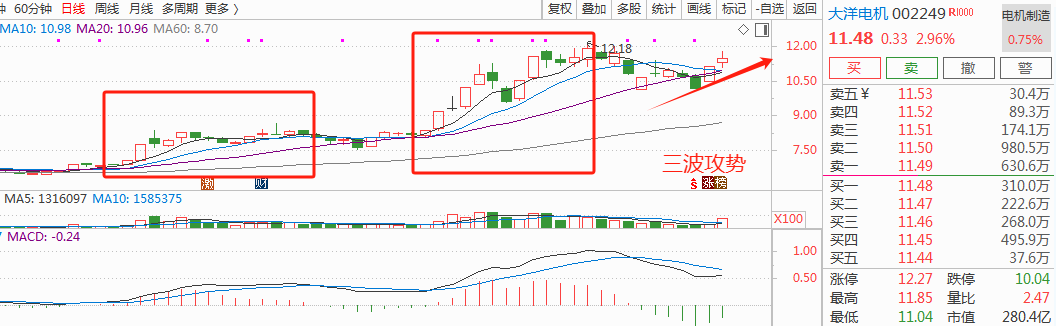 其实今天的分时是符合要求的,但早上也没去,主要原因就是上面说的,机器人的热度被“深地经济”给虹C过去了,所以造成今天整个上午都被压制。这票是机器人+新能源汽车+风电属性,今年2月设 “人形机器人电机” 项目组且完成关节模组方案设计,7月与同济大学共建联合研究中X攻关核心技术,还参股梅卡曼德并探索深化合作。依托电机电控技术优势,公司布局新能源汽车关键零部件,成为能覆盖燃油车与新能源车动力方案的供应商,且持续加大投入并重点布局核心零部件。芯片方面,公司2022年就透露掌握大功率IGBT及IPM模块封装技术并建试验线;风电领域,子公司中山宜必思开发海上风电风机产品。重点是,公司拟将回购价上限调至15/股,回购期限延长6个月至2026年5月10日。这个题材还能发酵,午后的异动就印证了这点,午后异动那一刻也上车了,如果不是时刻去盯,很难第一时间发现这个动作,目前还保持第三主升浪的行情趋势。