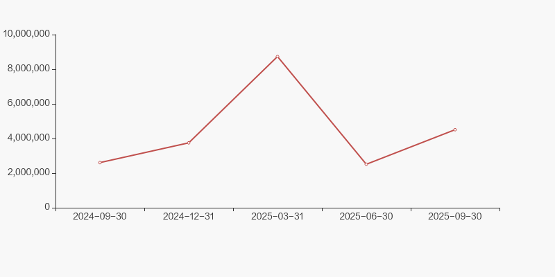 2024年9月30日至今,公司股东户数显著增长,区间涨幅为46.61%。2024年9月30日至2025年9月30日区间股价下降3.64%。