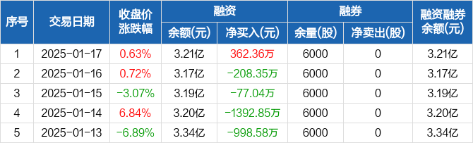 春秋电子:融资净买入362.36万元,融资余额3.21亿元(01-17)