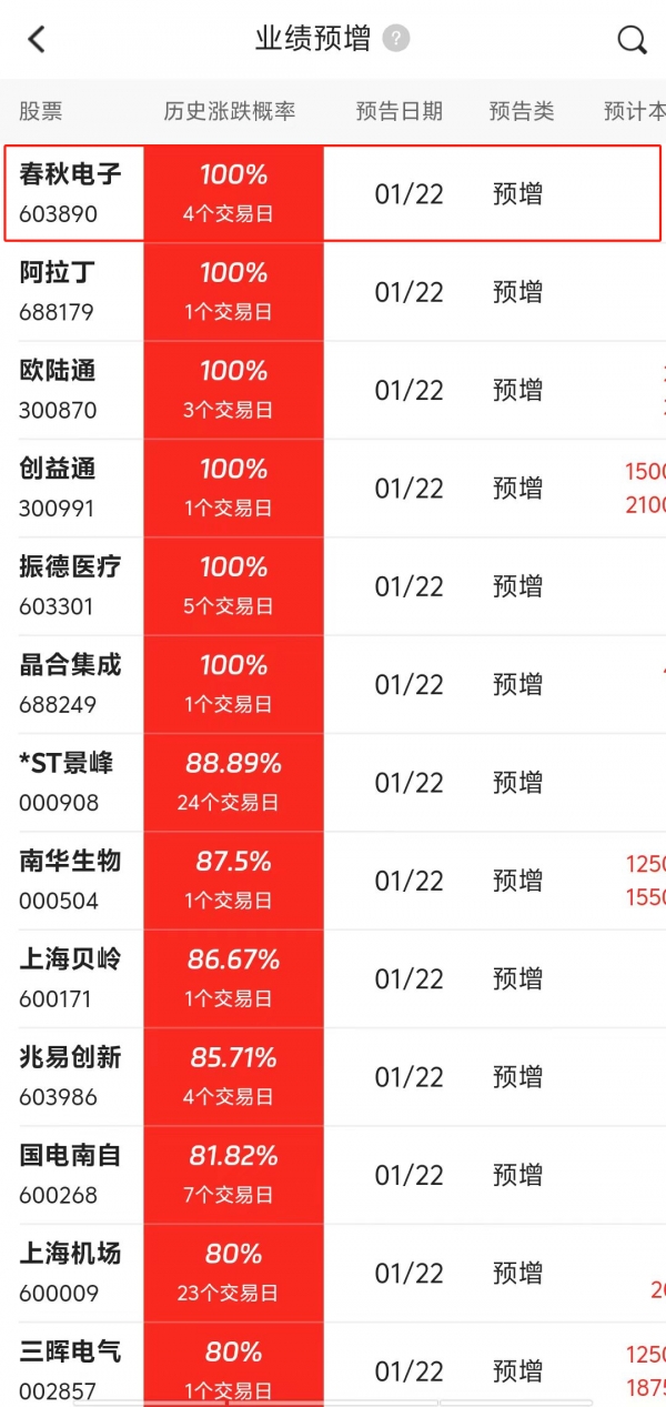 $春秋电子(SH603890)$ 随着AIPC业务的快速发展,$春秋电子(603890)2024年净利润预增554%-629%!历史该股多次触发业绩预增后,股价百分百出现上涨!这次喝西北风了哦,搞个铲铲,难道是我买了就这个走势