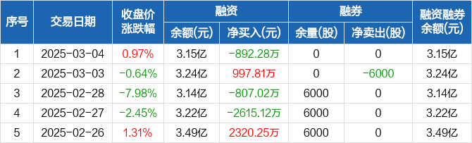 春秋电子:融资净偿还892.28万元,融资余额3.15亿元(03-04)