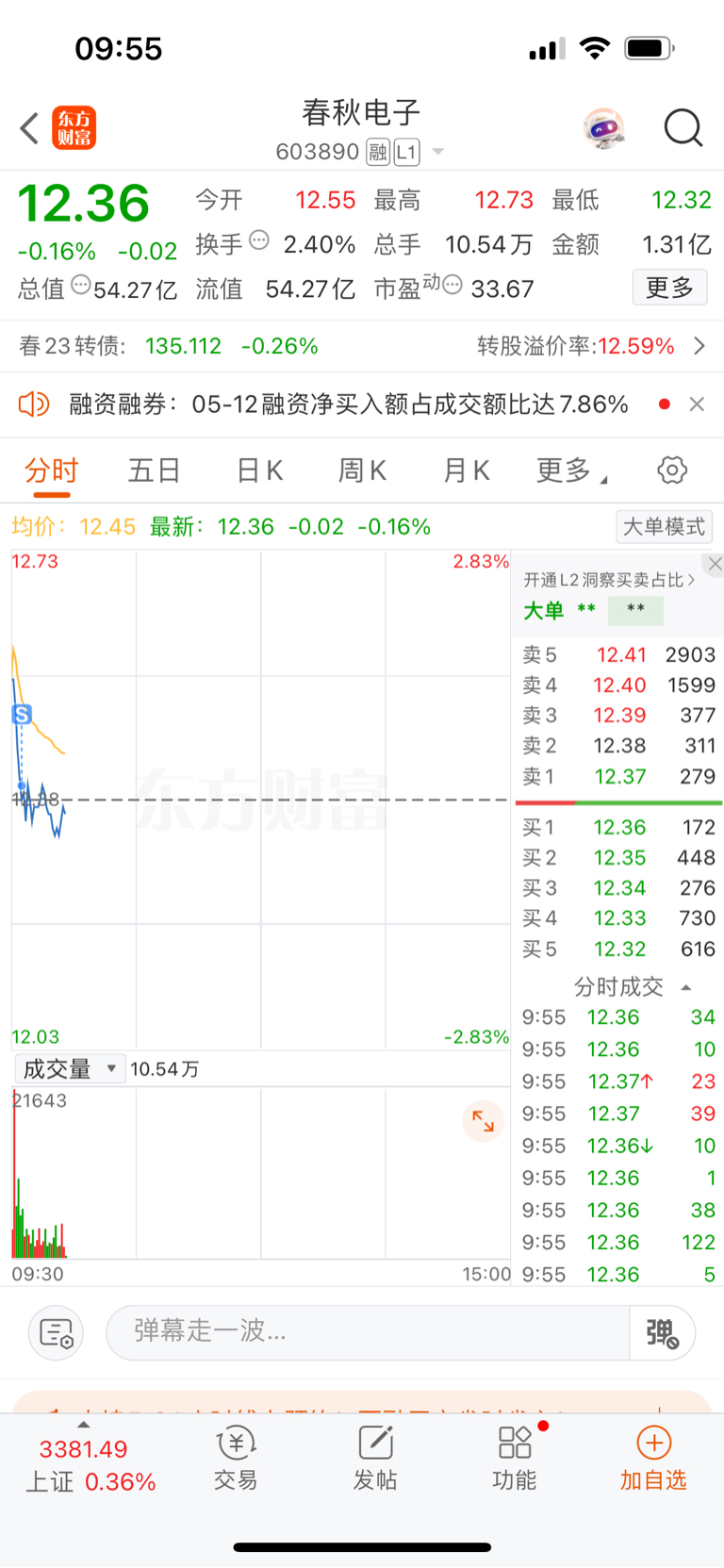 $春秋电子(SH603890)$ 没法玩,大盘高开必被砸,我每次都是0轴走。