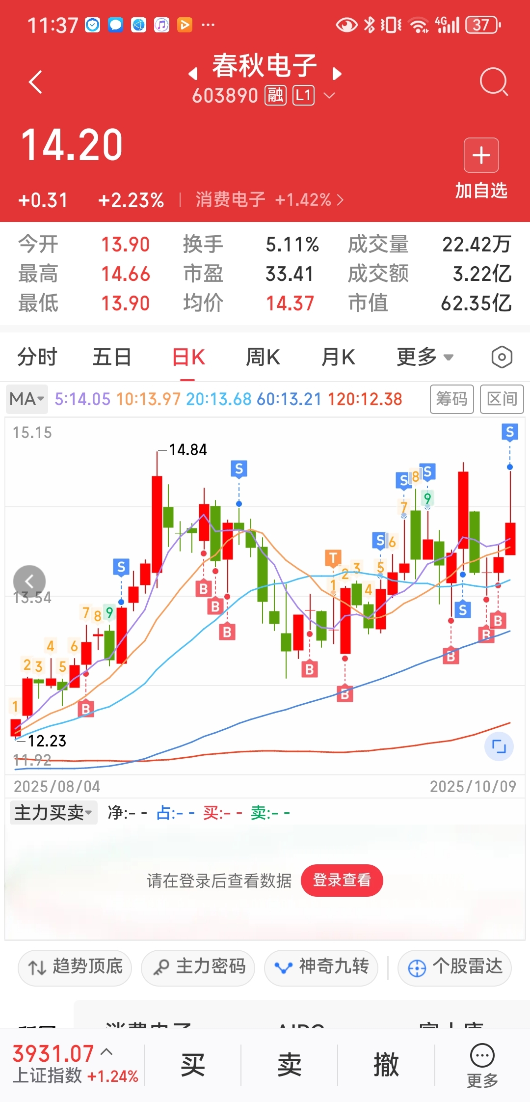 $春秋电子(SH603890)$ 感谢主力