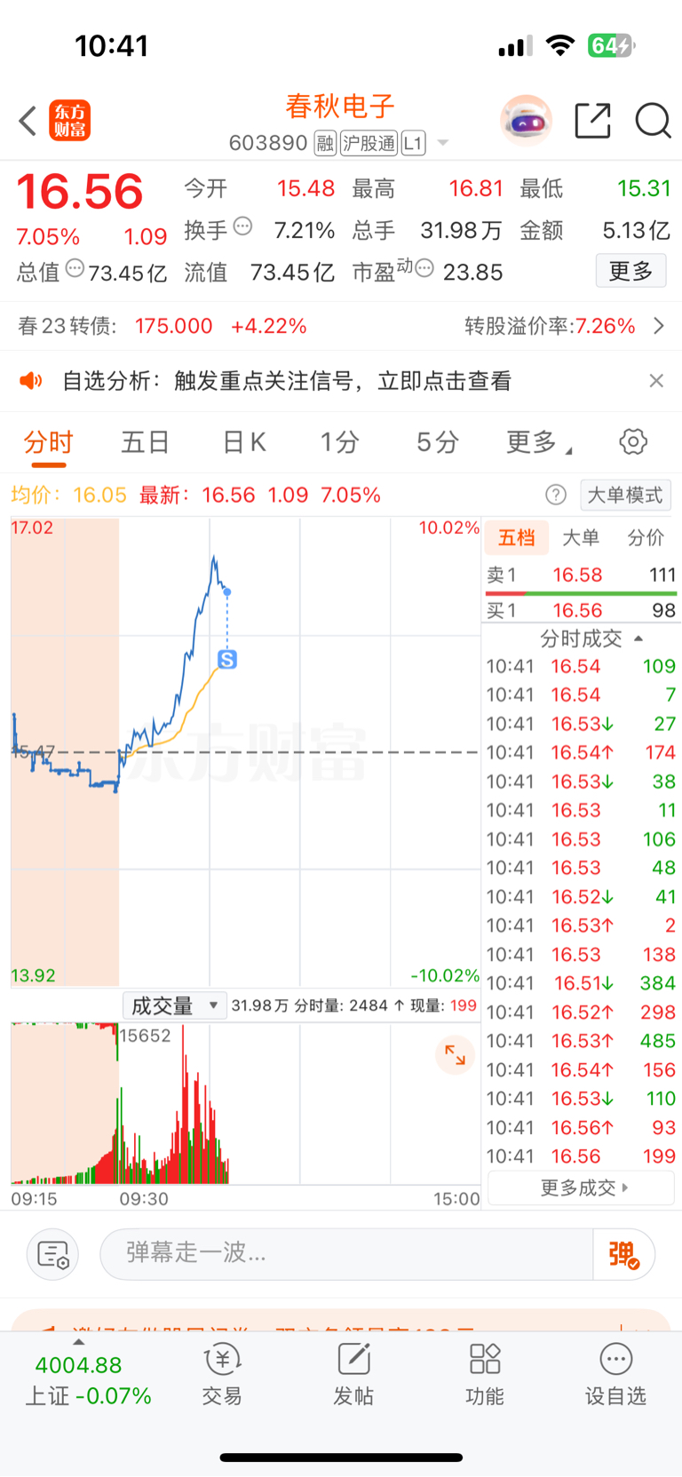 $春秋电子(SH603890)$ 可以涨停了 我卖了