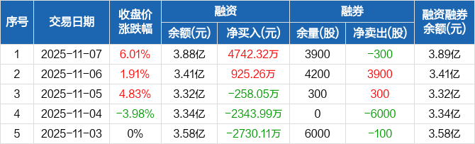 春秋电子:融资净买入4742.32万元,融资余额3.88亿元(11-07)