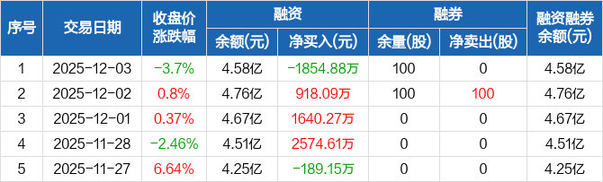 春秋电子:融资净偿还1854.88万元,融资余额4.58亿元(12-03)