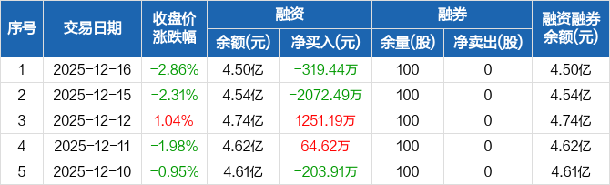 春秋电子:融资净偿还319.44万元,融资余额4.5亿元(12-16)