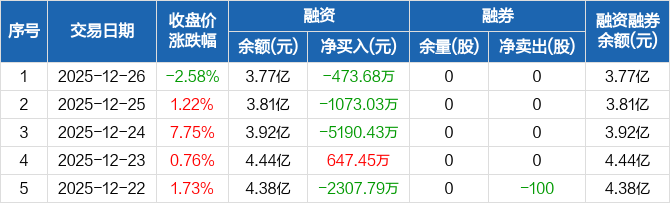 春秋电子:连续3日融资净偿还累计6737.14万元(12-26)