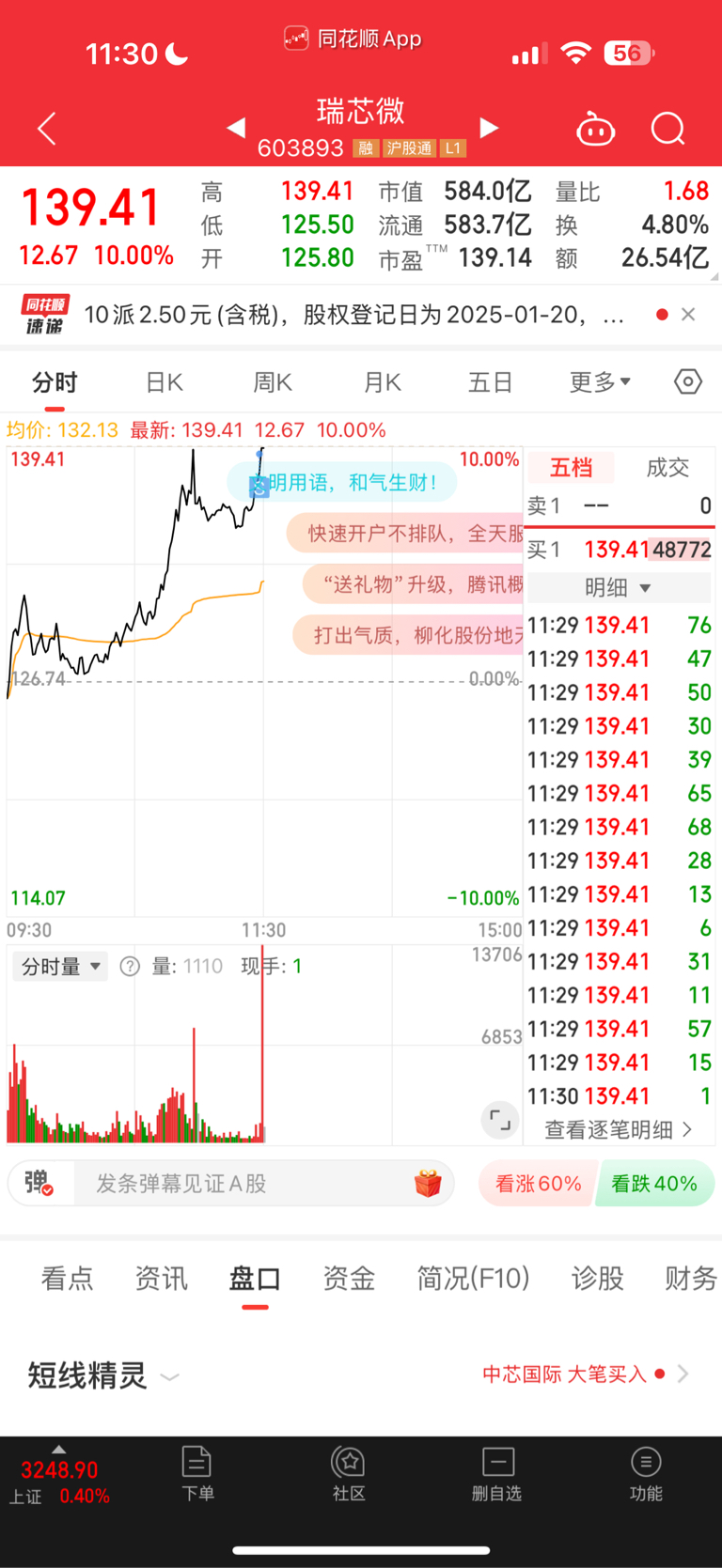 $瑞芯微(SH603893)$ 果然是半导体大哥 可以挂涨停自动卖出了