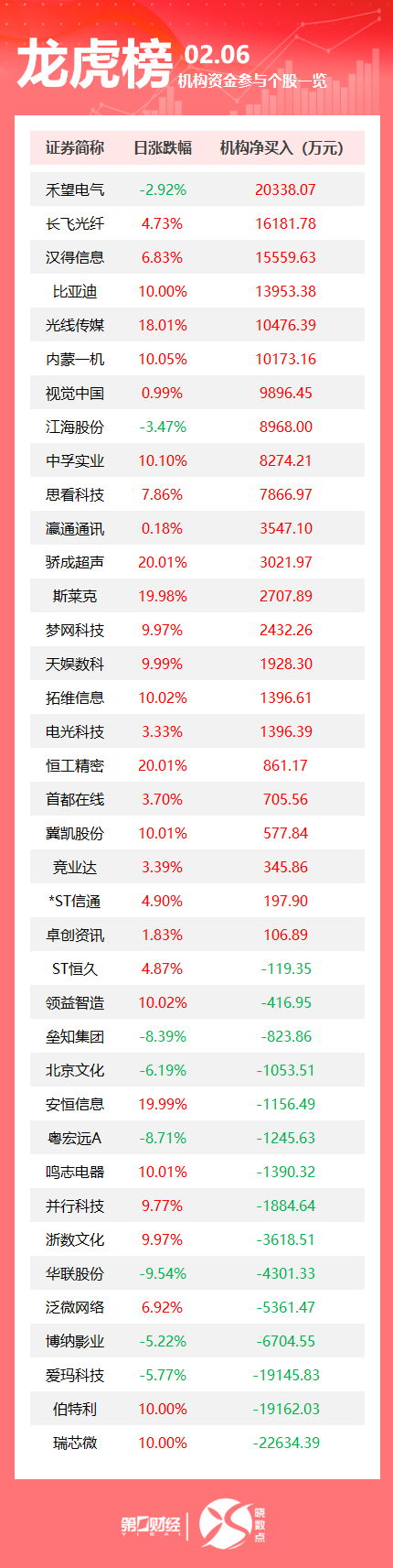 龙虎榜丨机构今日买入这23股 抛售瑞芯微2.26亿元