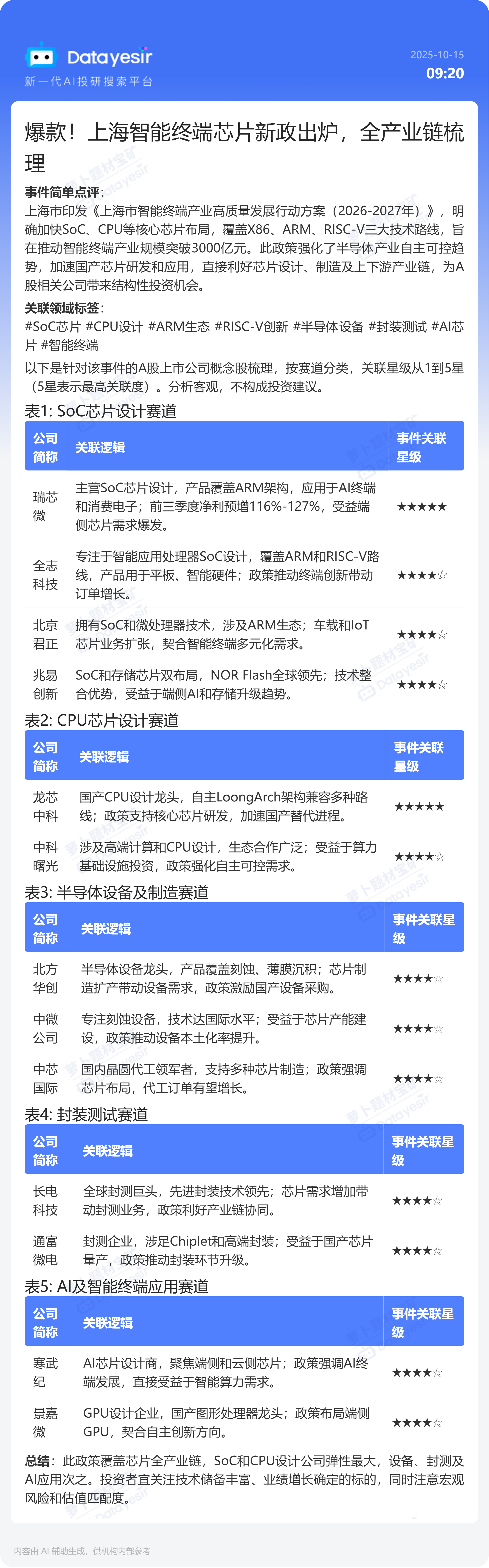 爆款!上海智能终端芯片新政出炉,全产业链梳理