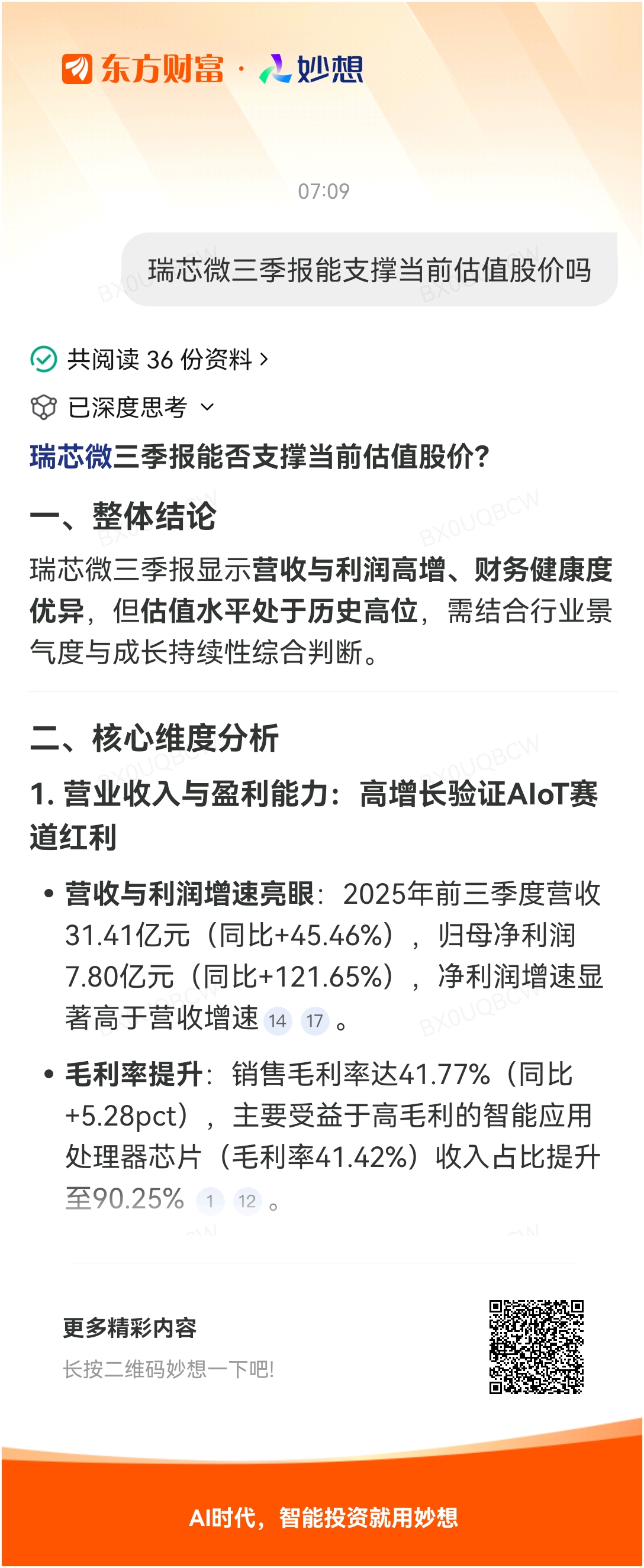 #@妙想,你怎么看?# 妙想一下:瑞芯微三季报能支撑当前估值股价吗$瑞芯微(SH603893)$