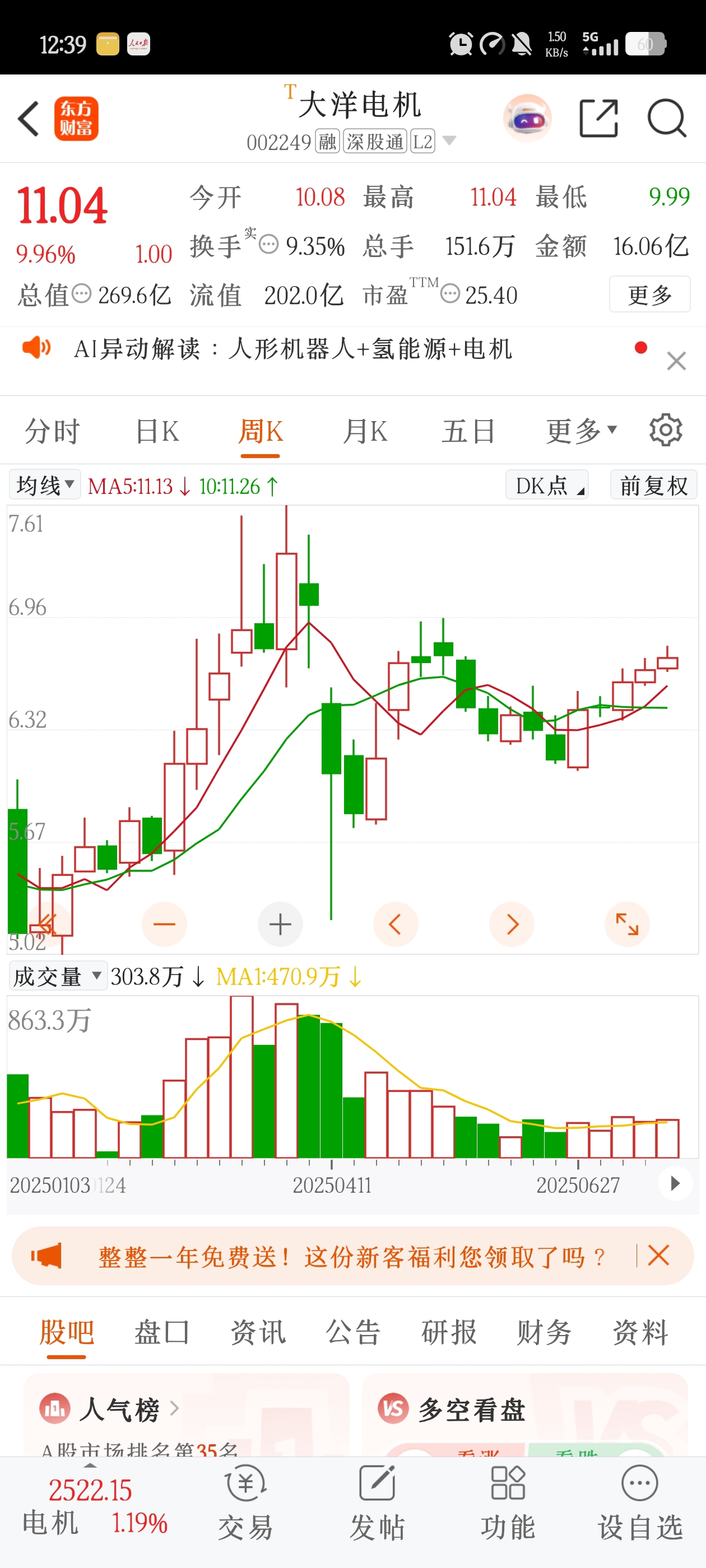 $大洋电机(SZ002249)$ 趋势反转周线图