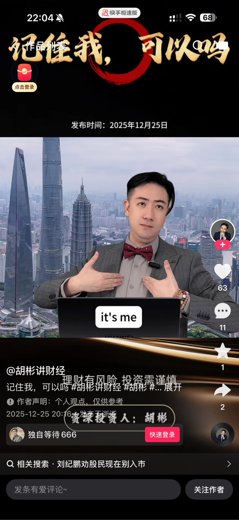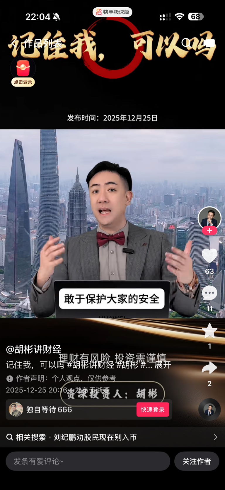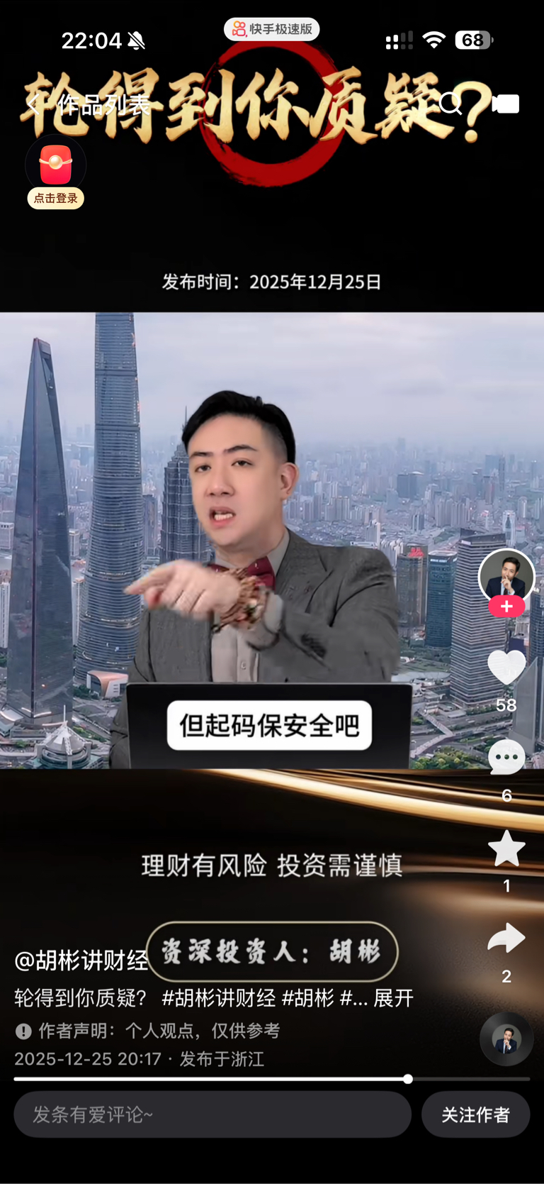 郑重声明:用户在财富号/股吧/博客等社区发表的所有信息(包括但不限于文字、视频、音频、数据及图表)仅代表个人观点,与本网站立场无关,不对您构成任何投资建议,据此操作风险自担。请勿相信代客理财、免费荐股和炒股培训等宣传内容,远离非法证券活动。请勿添加发言用户的手机号码、公众号、微博、微信及QQ等信息,谨防上当受骗!