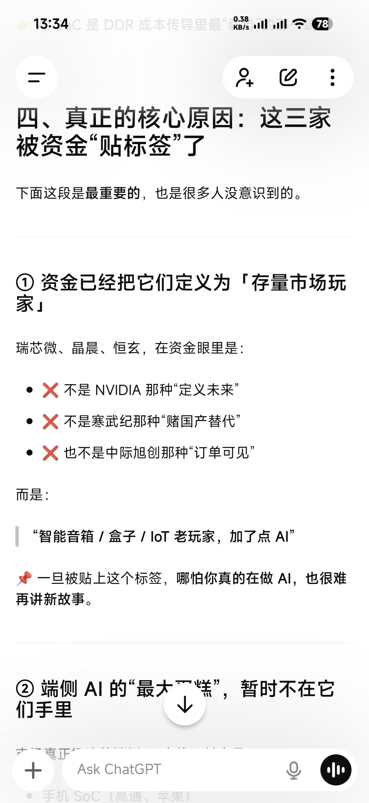$瑞芯微(SH603893)$ 我觉得chatgpt分析的就非常有道理,比国内的大模型,不会搜股吧的语料忽悠