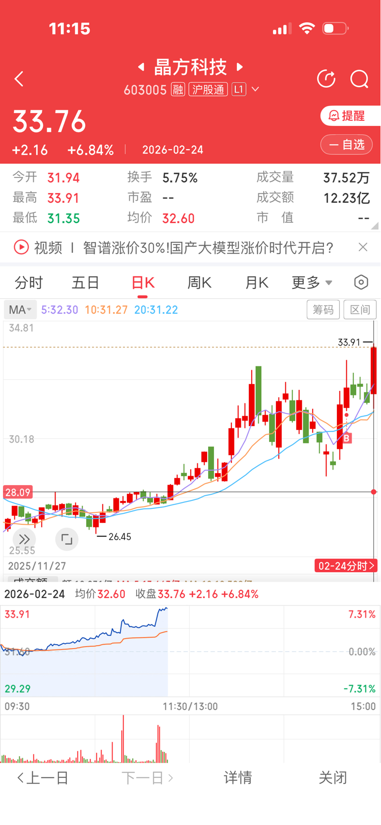 2月10日把大部分瑞芯微换成了晶方科技,真是庆幸啊!可惜没换完