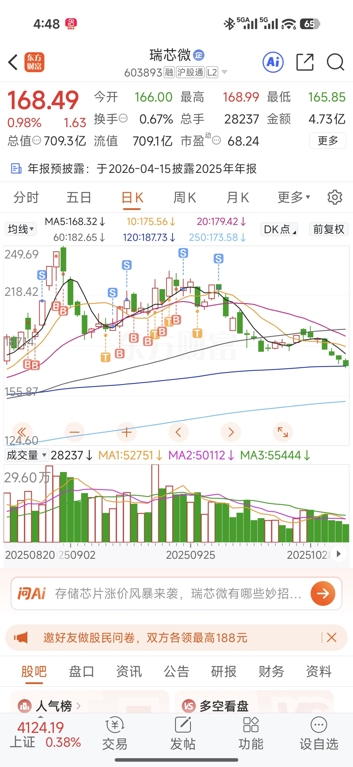 $瑞芯微(SH603893)$ 当时本来是赚钱的,信了湖肿的邪啥子几把290,还好后面跑了。现在都快腰斩了那B一天还吹