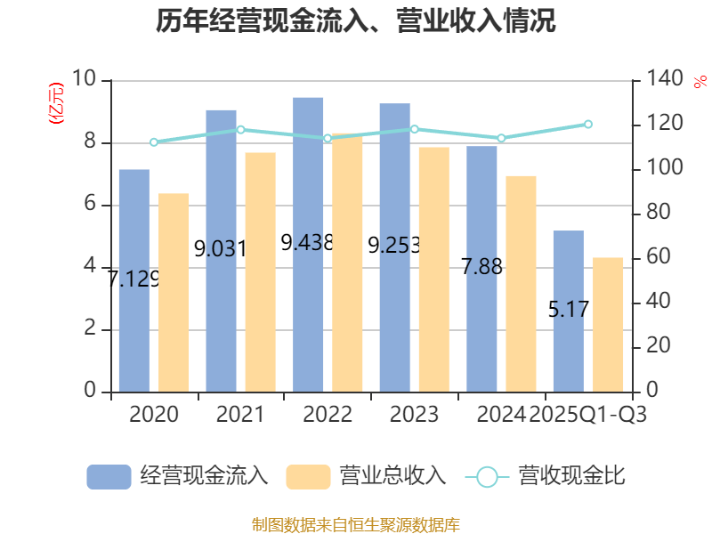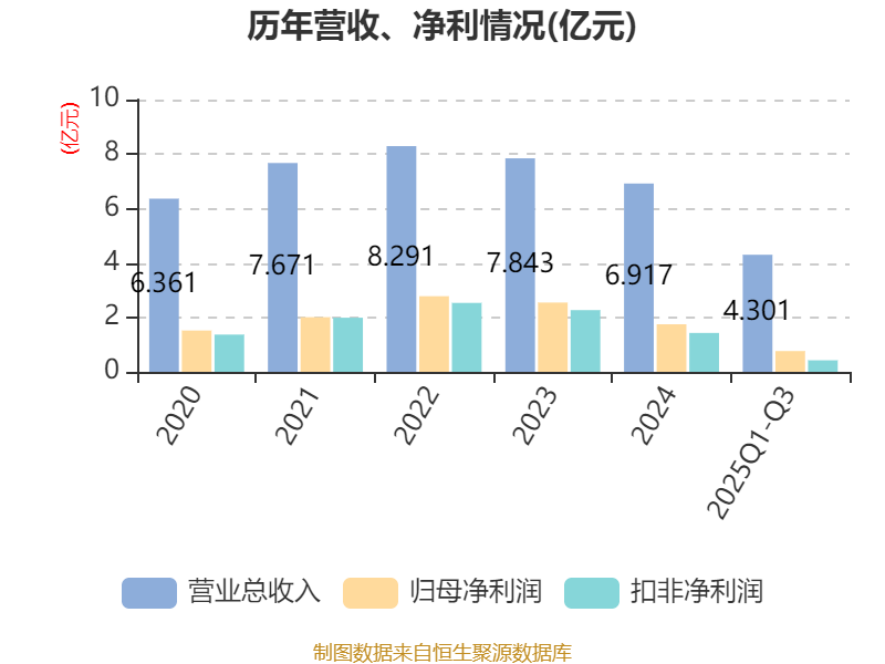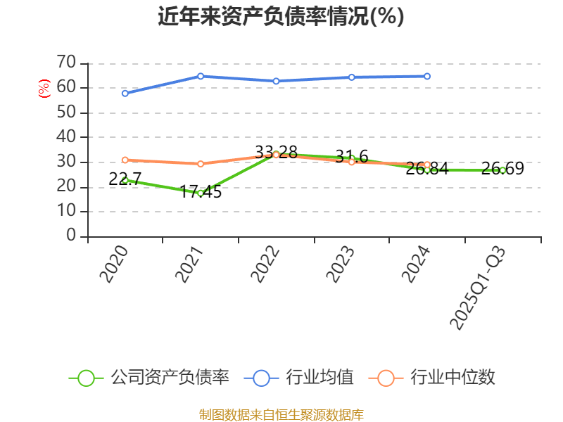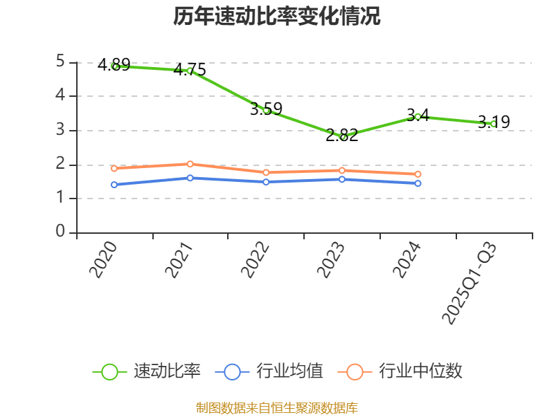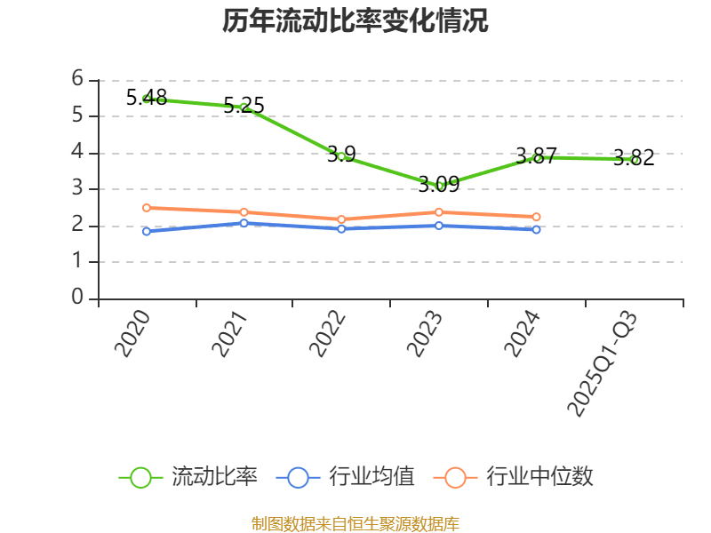 2025年前三季度,公司流动比率为3.82,速动比率为3.19。