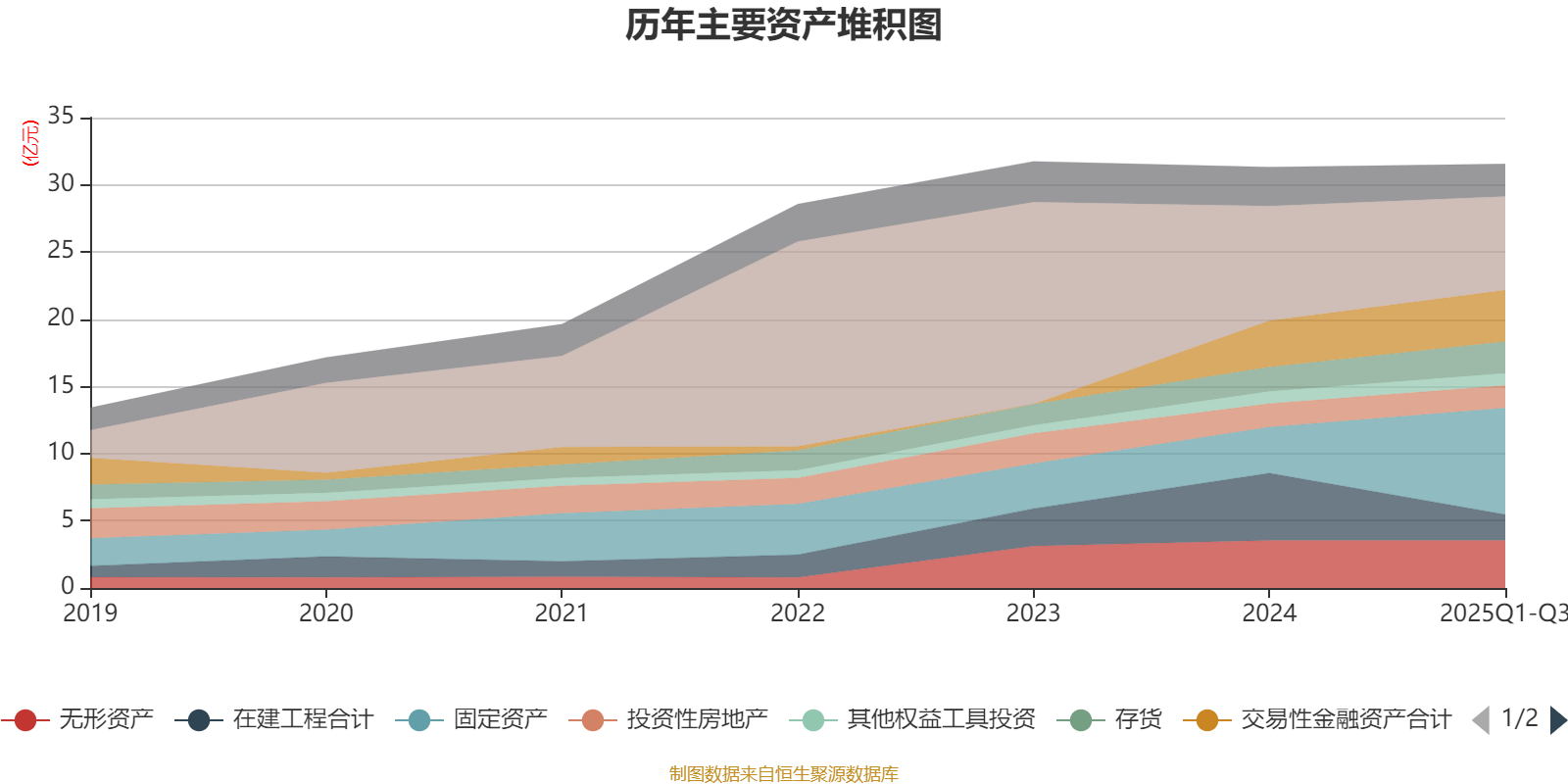 资产重大变化方面,截至2025年三季度末,公司固定资产较上年末增加131.02%,占公司总资产比重上升14.17个百分点;在建工程合计较上年末减少61.33%,占公司总资产比重下降9.87个百分点;货币资金较上年末减少18.34%,占公司总资产比重下降5.16个百分点;存货较上年末增加30.08%,占公司总资产比重上升1.69个百分点。