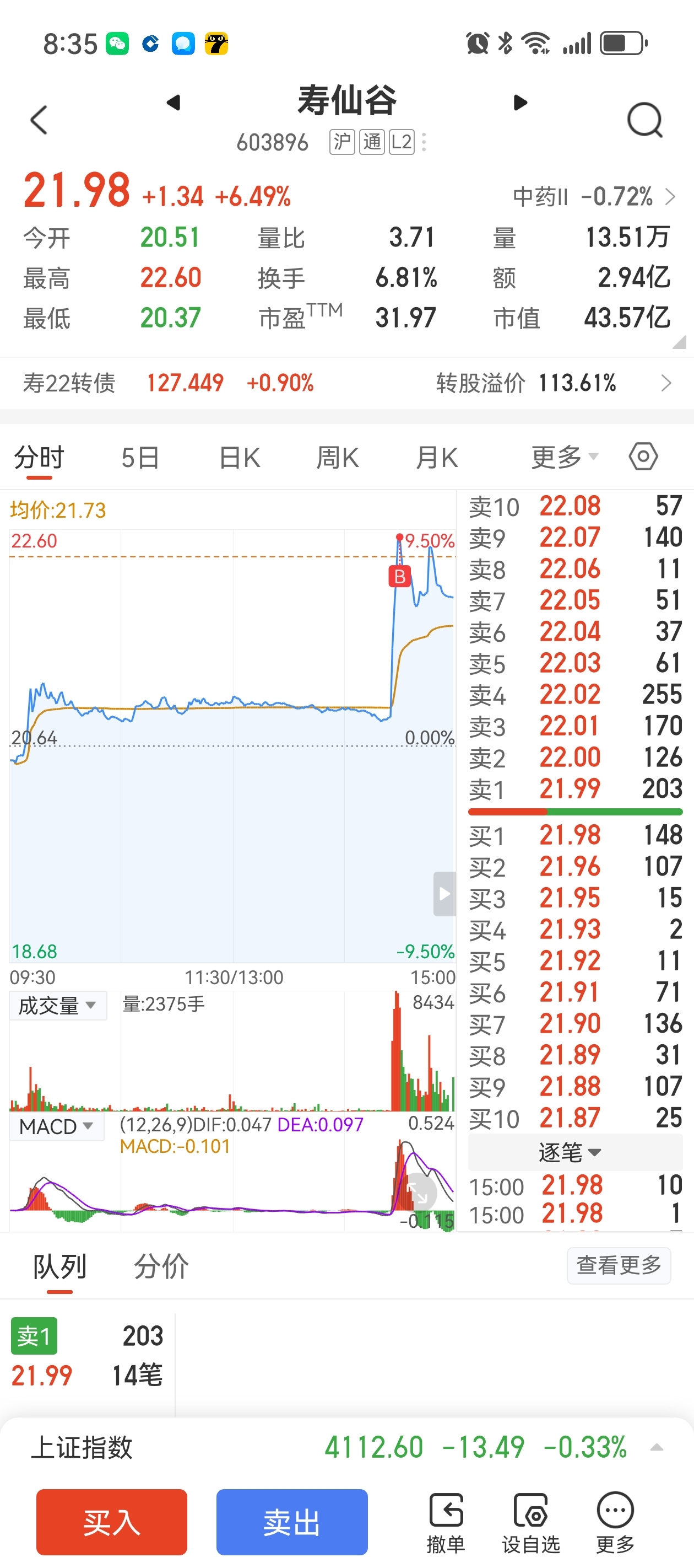 $寿仙谷(SH603896)$ 把我挂山顶了