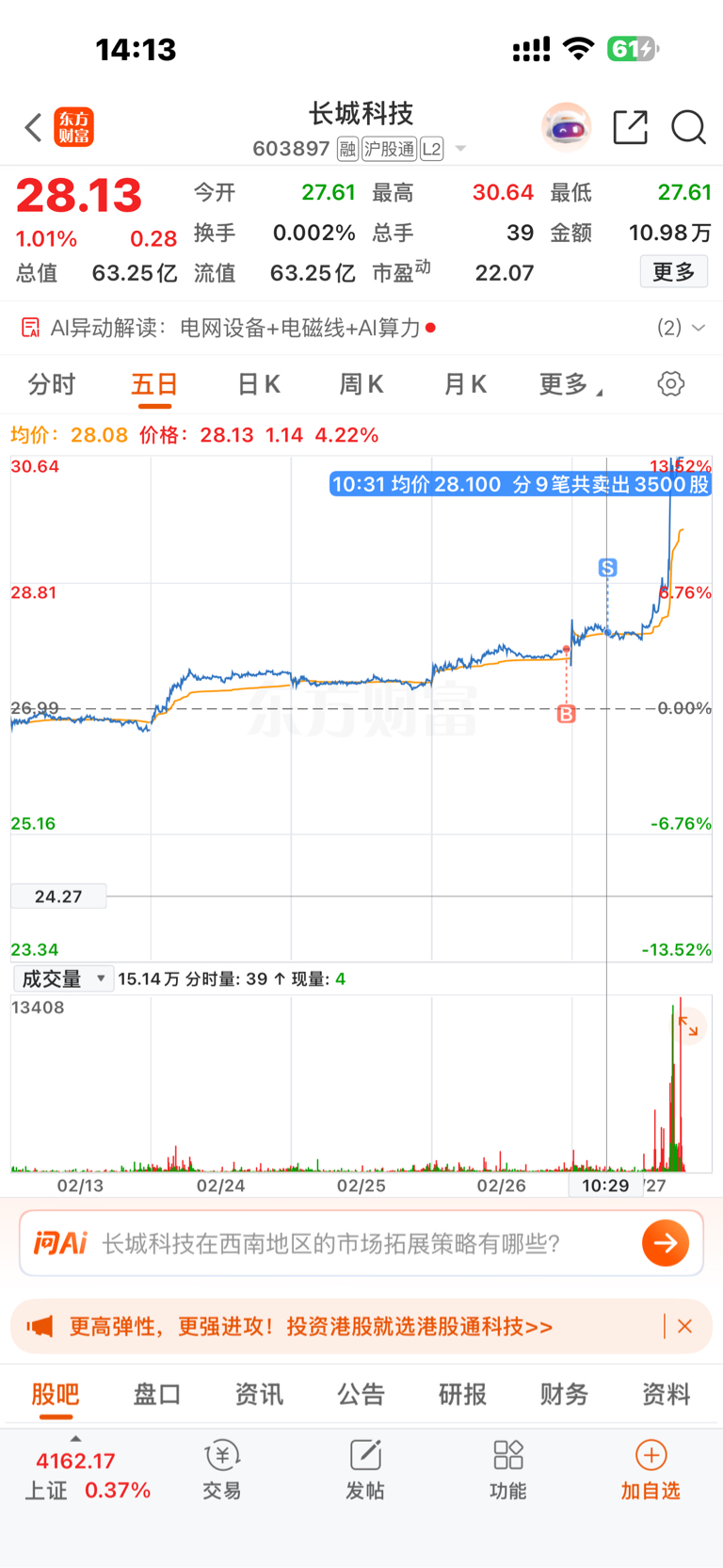 $长城科技(SH603897)$ 快感谢我