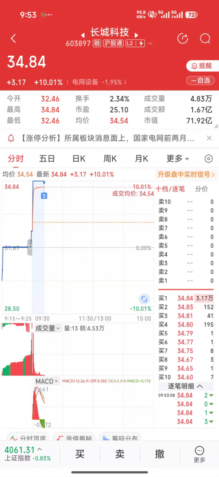 $长城科技(SH603897)$ 拜拜了您,涨到8000去吧!