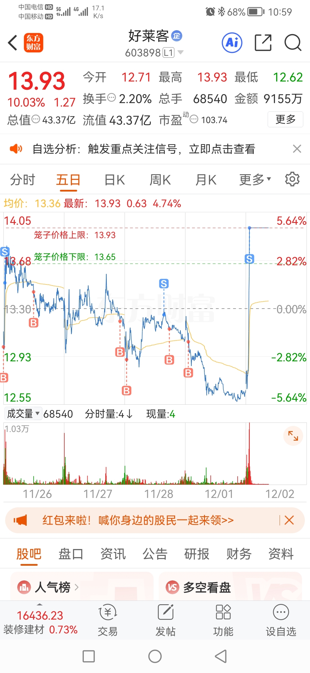 $好莱客(SH603898)$ 给我整的好难受。。。
