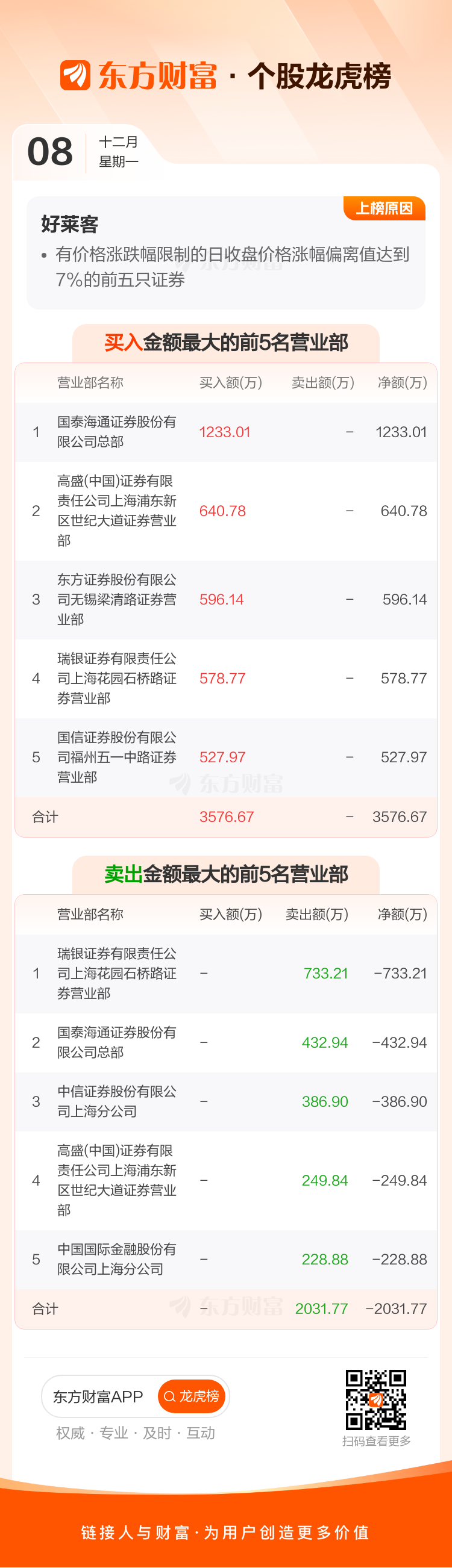 好莱客(603898)龙虎榜数据(12-08)