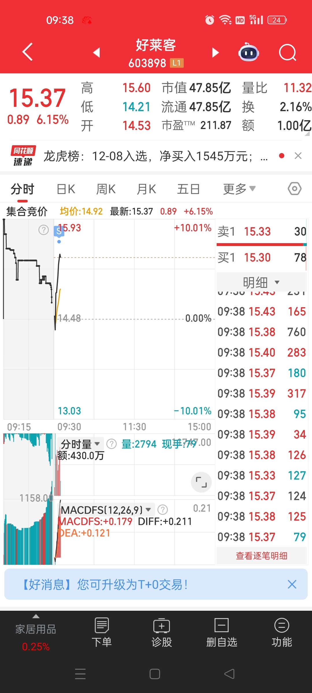 $好莱客(SH603898)$ 留下的发财