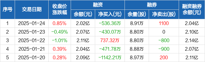 晨光股份:融资净偿还536.36万元,融资余额2.02亿元(01-24)