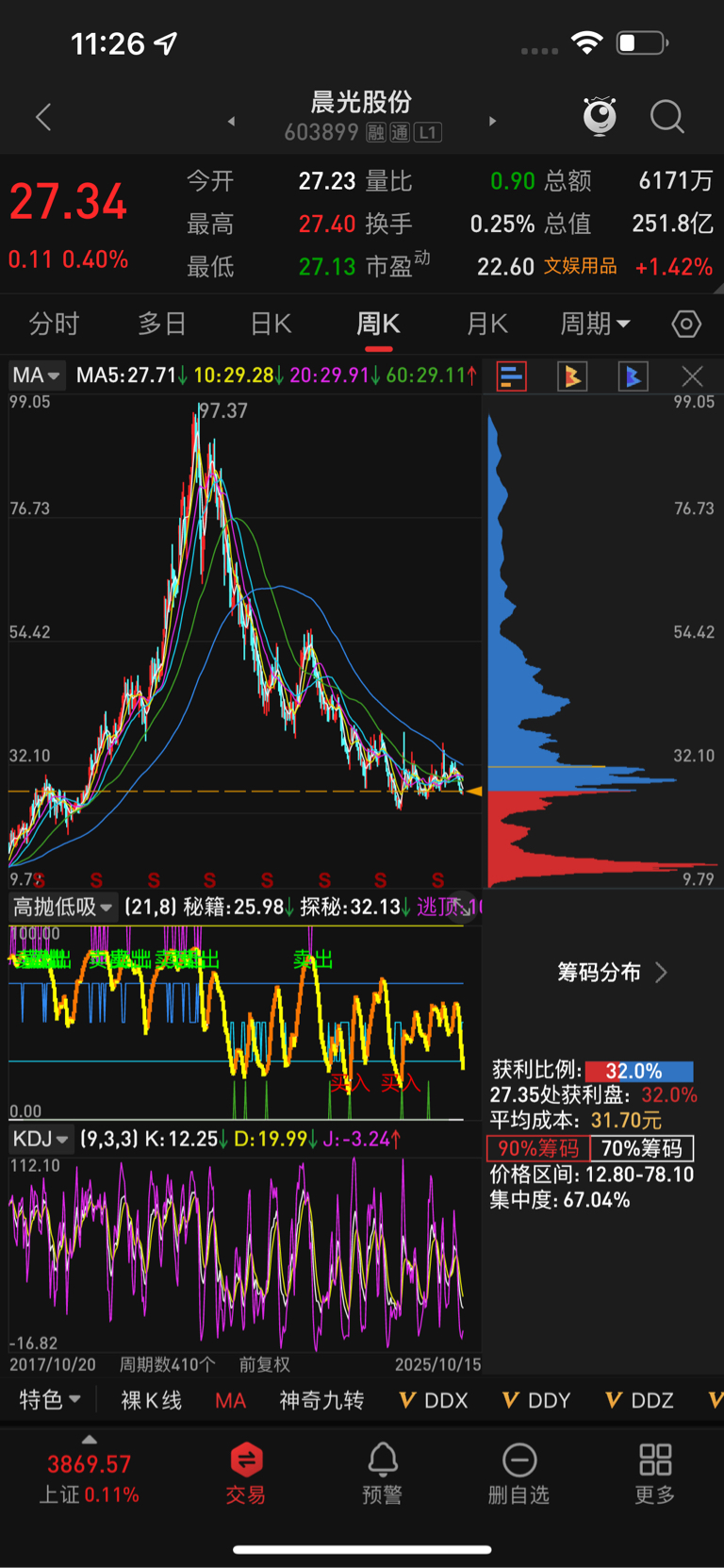 $晨光股份(SH603899)$ 这么多套牢盘?