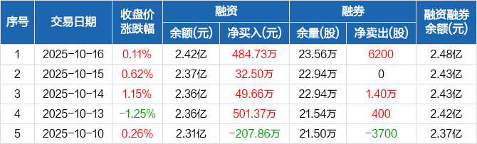 晨光股份:连续4日融资净买入累计1068.26万元(10-16)