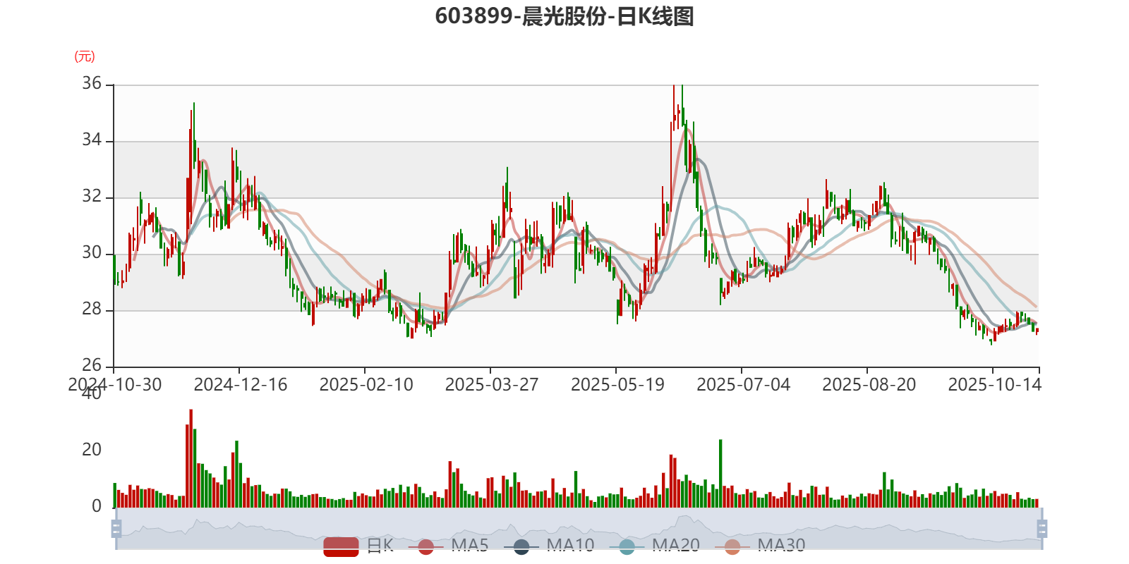 三季报显示,2025年三季度末的公司十大流通股东中,持股最多的为晨光控股(集团)有限公司,占比58.199%。在具体持股比例上,香港中央结算有限公司、上海科迎投资管理事务所(有限合伙)、上海杰葵投资管理事务所(有限合伙)、中欧养老产业混合型证券投资基金持股有所下降。
