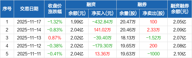 晨光股份:融资净偿还432.84万元,融资余额1.99亿元(11-17)