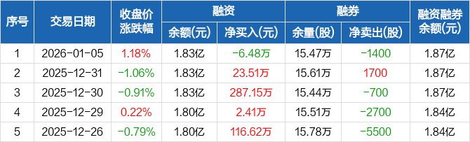 晨光股份:融资净偿还6.48万元,融资余额1.83亿元(01-05)