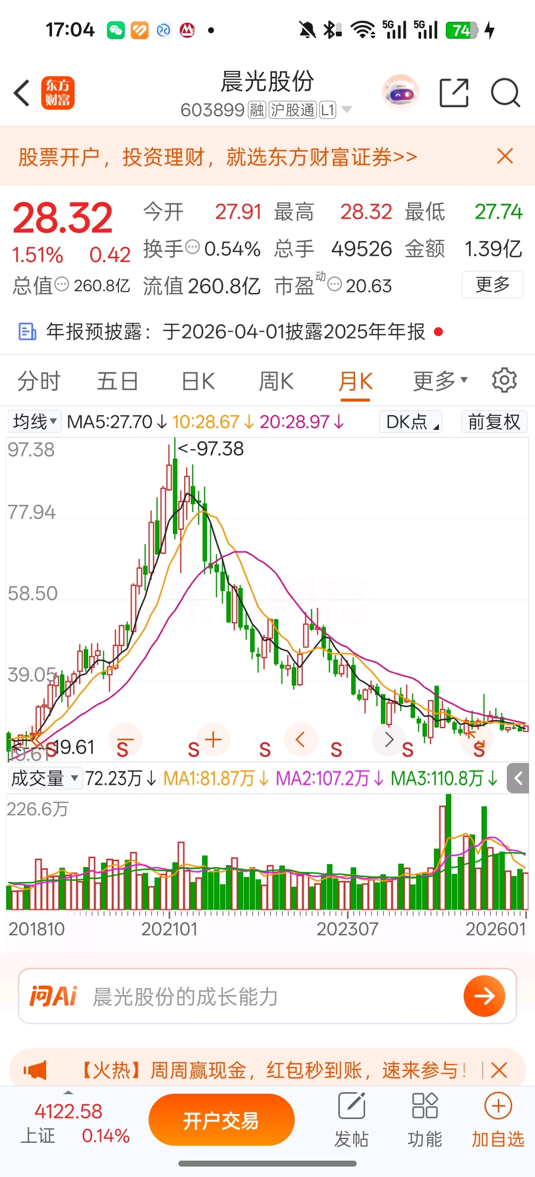 $晨光股份(SH603899)$ 这个A不知道画完没