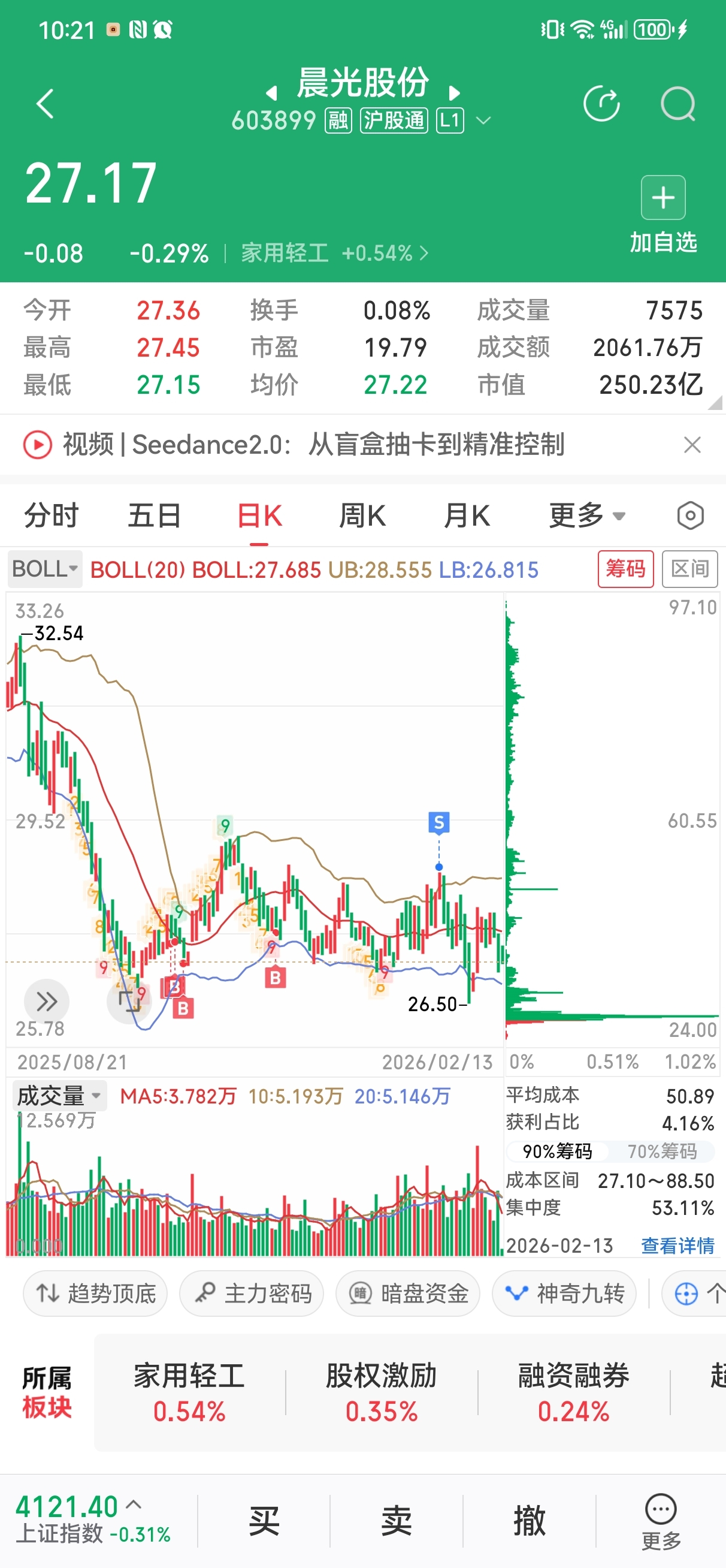 $晨光股份(SH603899)$ 震荡下跌