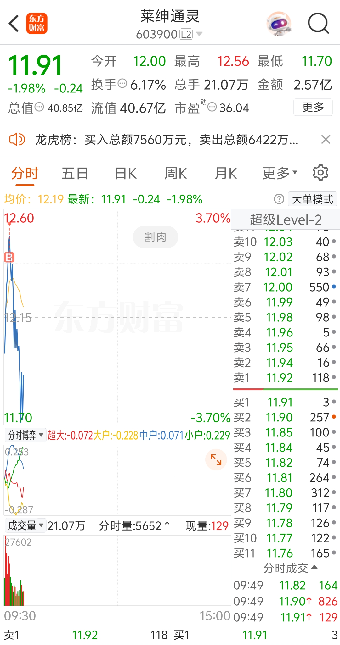 $莱绅通灵(SH603900)$ 怎么滴,演都不演了,我买进去就下跌