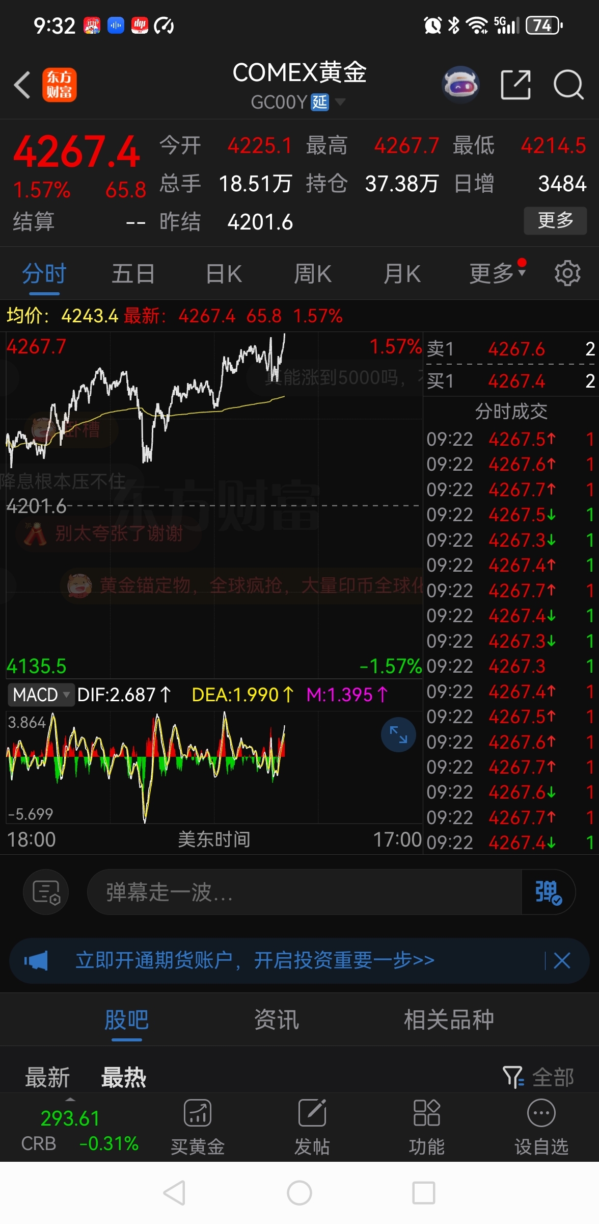 $莱绅通灵(SH603900)$ 黄金期货真刺激!你还会无动于衷?