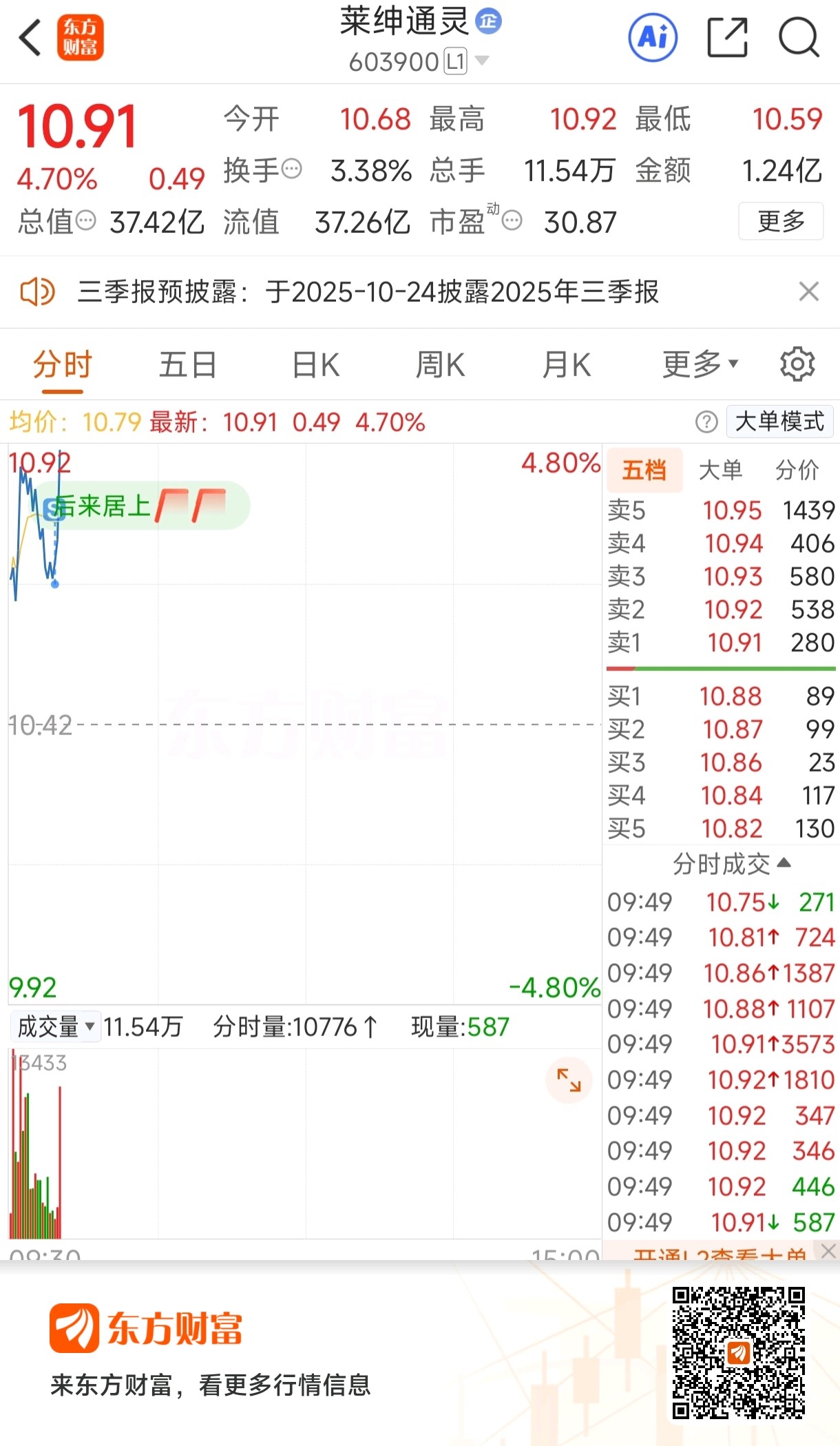 $莱绅通灵(SH603900)$ 快点来感谢我吧,不是我卖主力不会拉升