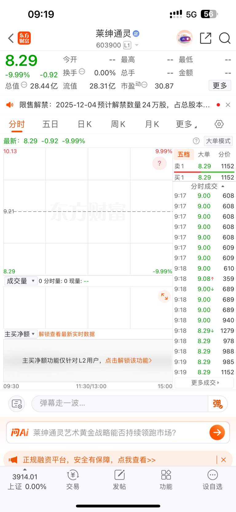 $莱绅通灵(SH603900)$ 这是在玩股票