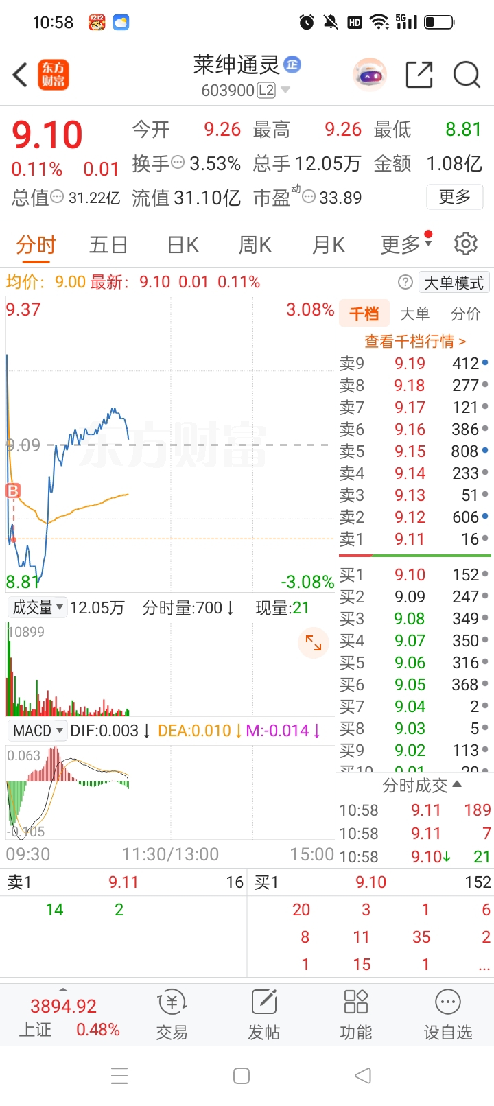 $莱绅通灵(SH603900)$ 可惜不能t+0啊