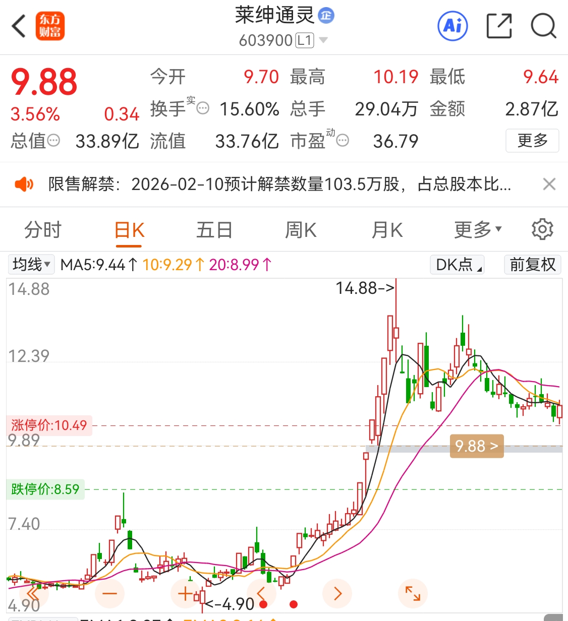 $莱绅通灵(SH603900)$ 多少板!你们自己数一数!该启动了!