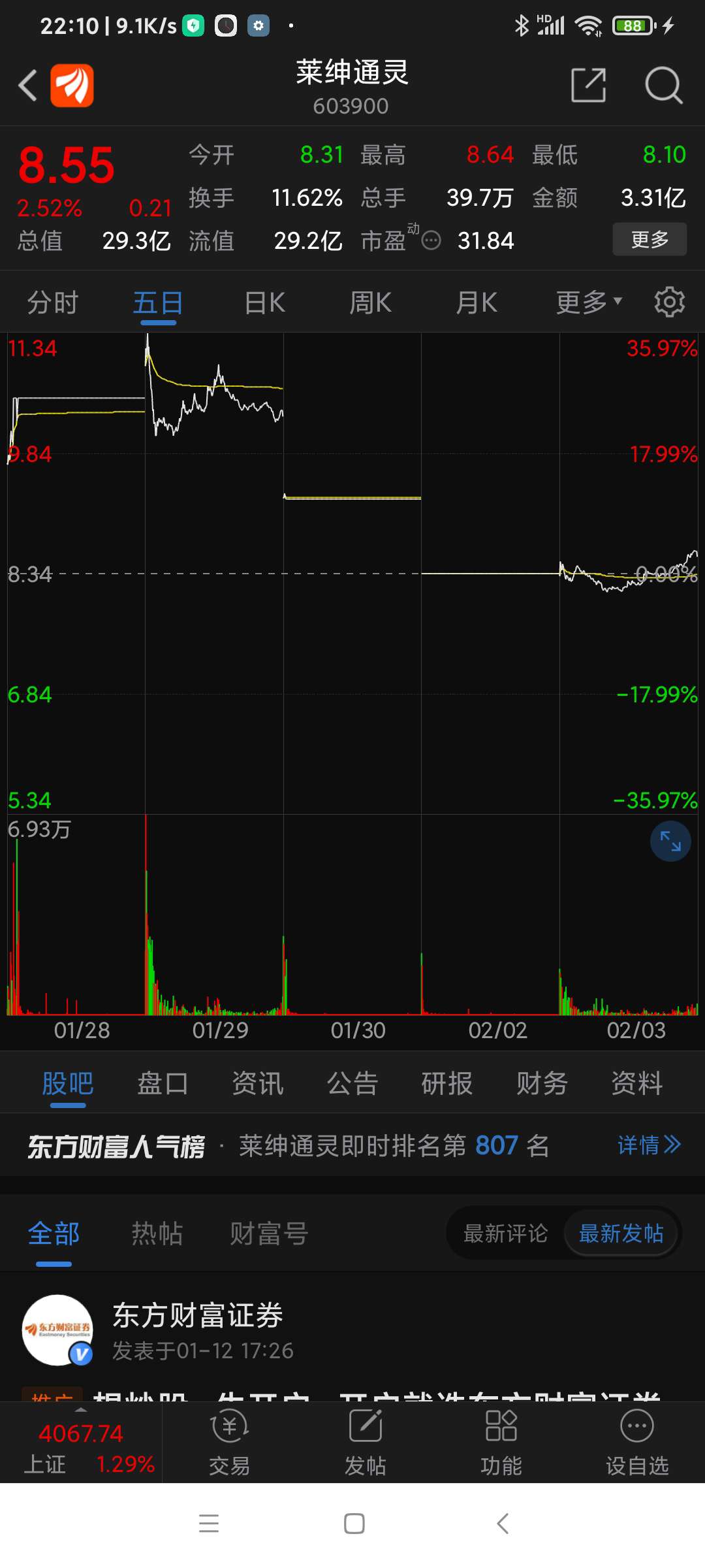 莱绅通灵,这几天跌过头了,沾金就跌?……冤大头我来当,8.42进的,明天听天由命。