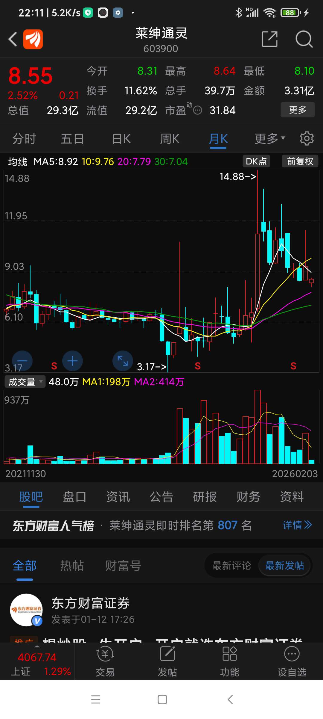 莱绅通灵,这几天跌过头了,沾金就跌?……冤大头我来当,8.42进的,明天听天由命