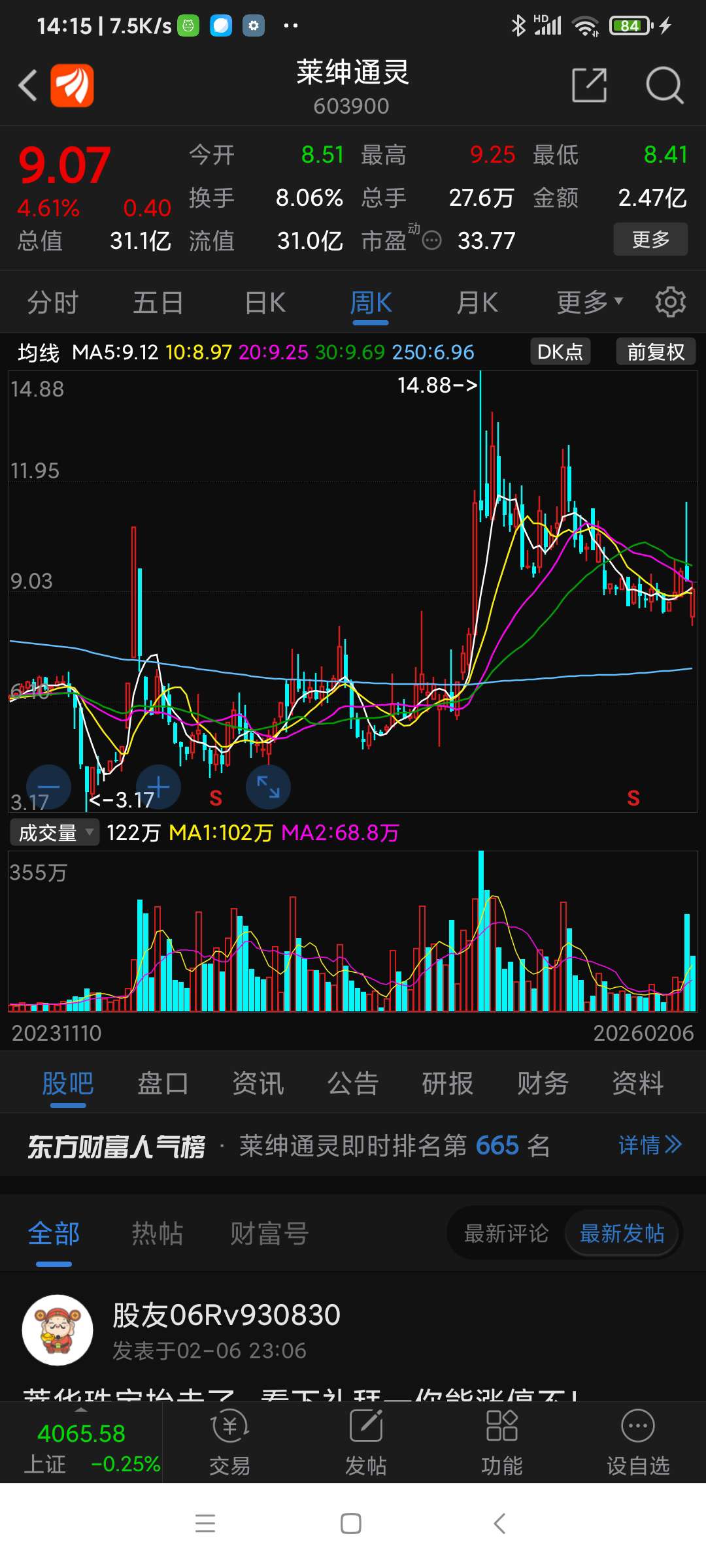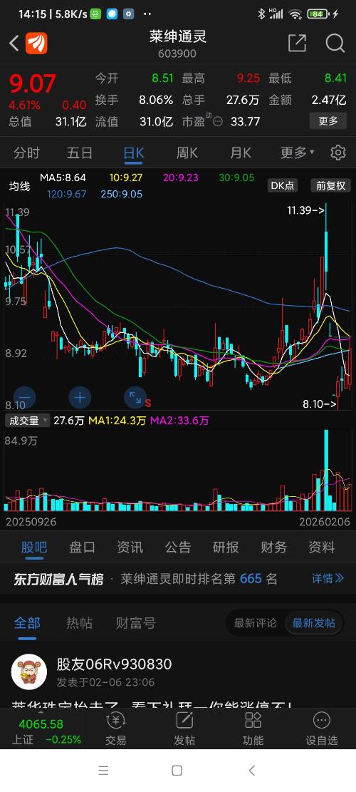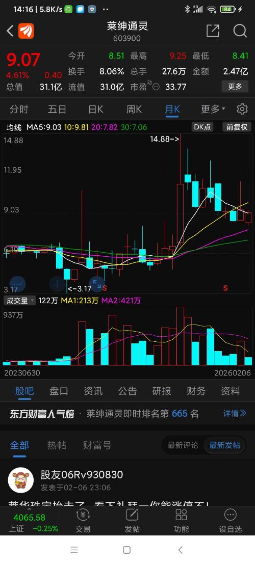 莱绅通灵,周五表现很好,后市低吸看涨,综合推测,这股26年的底已过,就在8.1元。