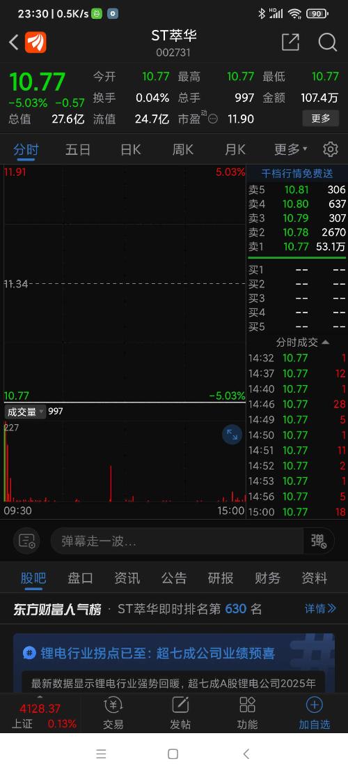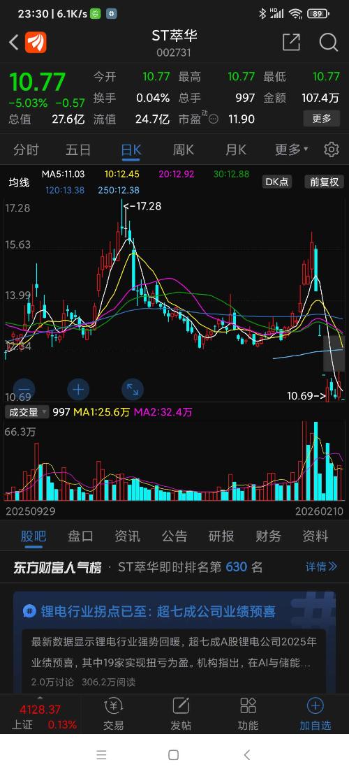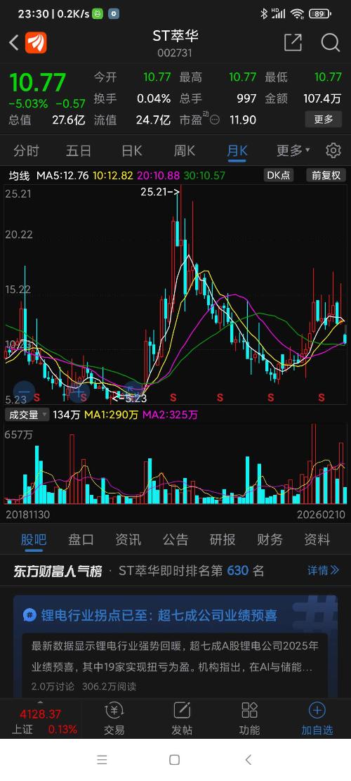 ST萃华,沪深股市前两个月最坎坷的股票,先后经历金银崩盘丶业绩预减丶被ST丶被证