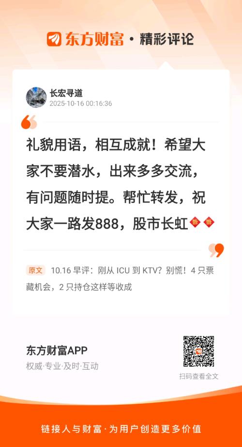 各位朋友,今天咱先不聊 K 线、算点位,就聊聊心里话 —— 我知道昨天不少人心里跟被针扎似的,连晚饭都没吃好;今天看着普涨修复,又有点不敢相信,生怕 “刚开心就又跌回去”。这种 “一天 KTV、一天 ICU” 的行情,谁的小心脏也扛不住啊!其实真不用这样,我不是来给你讲复杂技术的,就是想陪你捋捋今天的机会,也帮你把紧绷的弦松一松。
