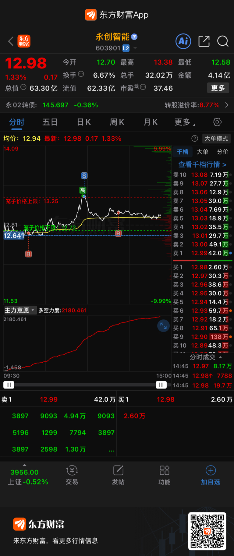 $永创智能(SH603901)$ 买回来一些,既然不涨了,我以为会大涨的